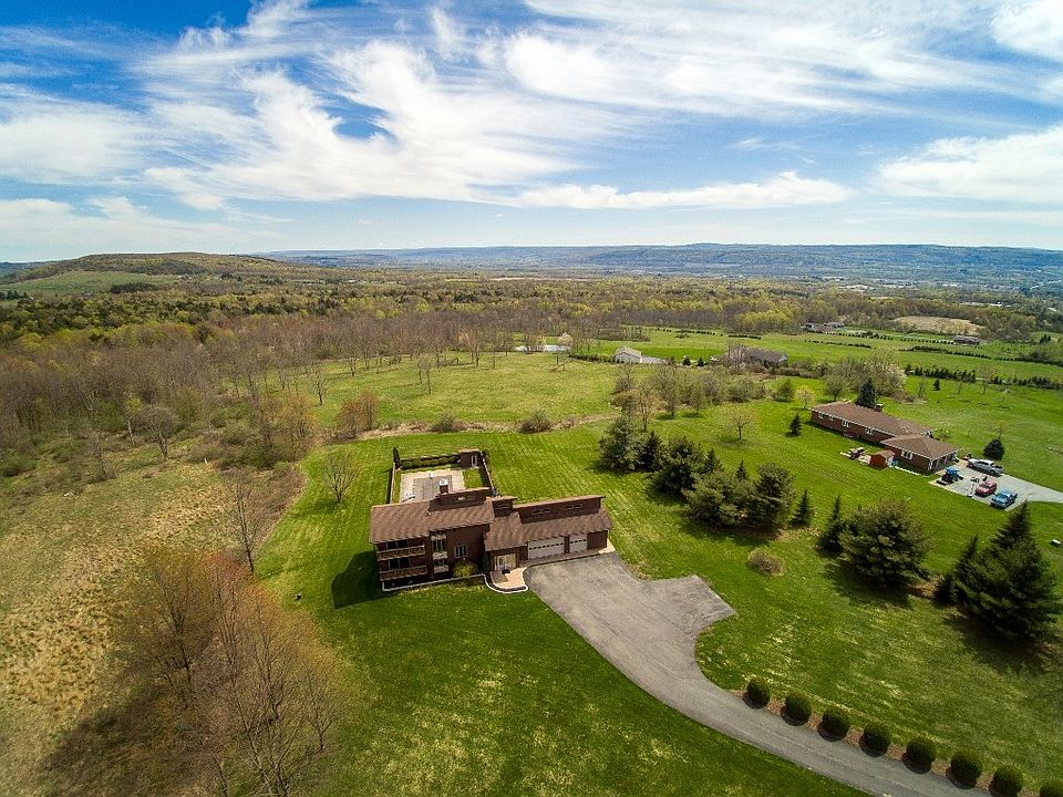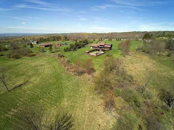 Valley View, a contemporary home overlooking stellar views of the historic Mohawk Valley. Offering a varied , Open floor plan with 3 floors of panoramic views, through energy efficient windows running the entire span of the structure. The home can accommodate any type of living arrangements with living space on 3 levels . With three bedrooms, one on the main level and 2 on the 2nd level, 3 and a half bathrooms, office, family room and formal entertaining areas. Numerous exterior decks beckon one to take advantage of the private views. Newer red oak hardwoods adorn much of the flooring. Two remote controlled propane fireplaces are located in the formal living area and the master bedroom. Fantastic chefs kitchen with granite counters and new stainless steel appliances to include beverage cooler. Attached garage has heating and cooling. New LED recessed lights. Smart thermostats and light switches controlled by your phone app. The interior design would make Joanna Gaines proud! Vibrant and smart color palettes throughout the home. In ground , Heated pool with new winter cover. This home has been impeccably cared for and offers a wonderful way of life on 14 acres in the Whitesboro school district.