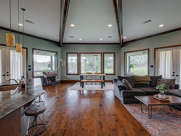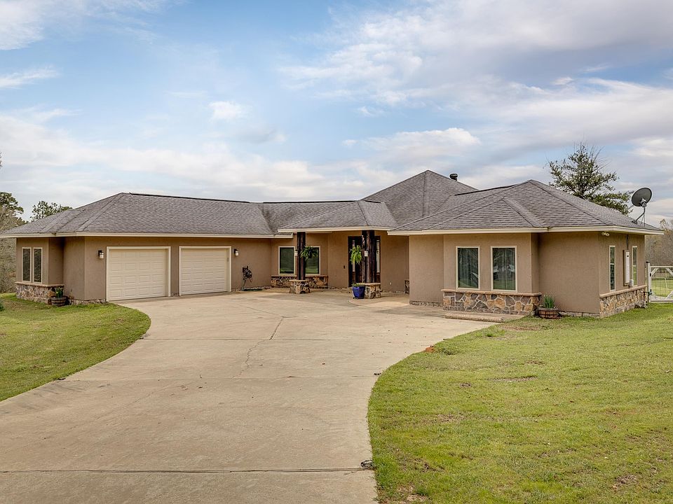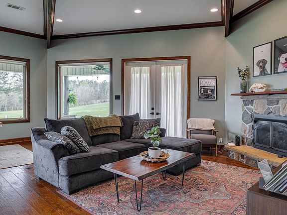 Experience the charm of rural living with this stunning property for sale in a sought-after Lake D'arbonne residential area. Nestled on over 7 acres of cleared and pastured land, this home offers a serene retreat with breathtaking views. Step inside to discover a spacious living room with extensive glass, a stone fireplace, and exposed beamed 12 ft ceilings. The kitchen boasts generous cabinetry, perfect for the home chef. Solid wood plank flooring and natural exterior stone add to the rustic charm. Enjoy over 1000 square feet of covered porches, ideal for relaxing or entertaining guests. Plus, stay prepared with a 20,000kw Generac generator and an on-demand water tank. Don't miss this opportunity to own a piece of paradise. Schedule your showing today!