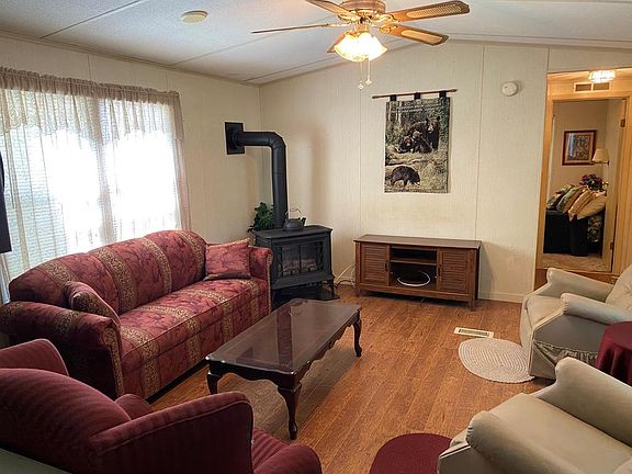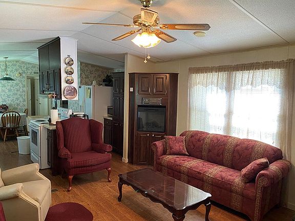 A FURNISHED HOME WAITING FOR YOU! This affordable manufactured home is on an acre that's unrestricted so you can have fresh eggs from your chickens if you desire, The kitchen is the ideal size with a bar island and all the appliances. You can relax by the gas log stove then retire to your roomy Master Suite with huge garden tub, stand up shower and double vanity. Down the hall is your guest bath, 2nd bedroom plus TWO bonus rooms that can be used for family and/or guests and an office to craft room. You'll enjoy the front porch with a lovely view and just simply relax the day away. Double carport and outbuildings. You also have room for a garden. ENJOY THE COUNTRY LIFE HERE!
