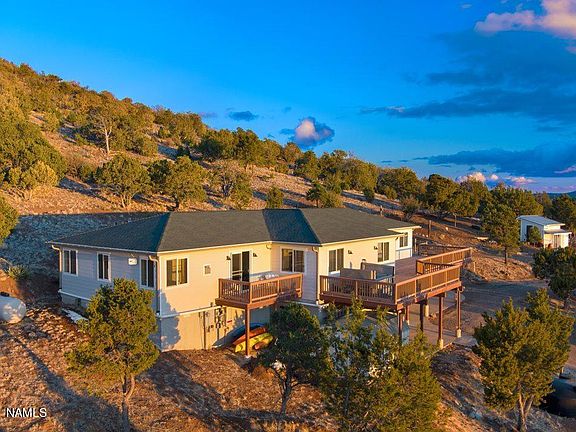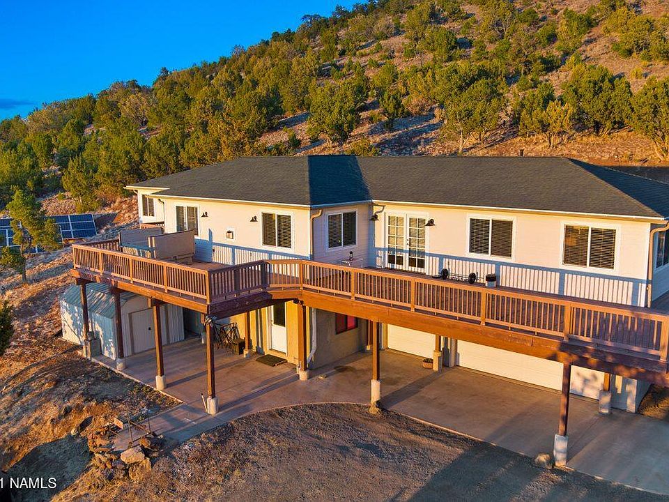 Astonishing views from this gorgeous hillside retreat home. Sit in the hot tub on your deck and enjoy the best views in Williams... Watch the Grand Canyon Railway in the distance or take in the daily elk visits! The sunsets from the newly replaced deck will take your breath away. This 4 bedroom/3 bath stunner is everything you need to escape the hustle and bustle of daily life, while less than 10 minutes from Williams. And there is NO HOA! You will love the OPEN FLOOR PLAN and indoor/outdoor living space. This home is perfect for entertaining! The property includes a barn, stable, animal pens, chicken coop, fenced dog run, and storage shed. Solar lease and panels convey if you want them. Please enjoy the VIRTUAL TOUR and book your showing fast! This incredible home won't last long!