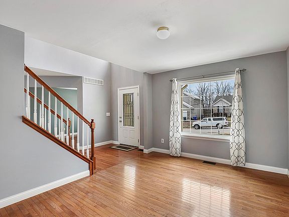 Stunning 4 Bed, 3.5 Bath, 2-Story in sought-after Hunter's Green! Inviting 2-Story Entry opens to formal Living and Dining Rooms, all with gleaming hardwood floors. The hardwood continues into the Family Room, featuring a beautiful brick wood burning fireplace and a wall of windows overlooking the rear yard. Updated Kitchen boasts granite countertops, stainless steel appliances - double wall ovens, solid wood cabinetry and a spacious eating area. Main Floor Laundry and an updated Powder Room complete the Main Floor. Vaulted Primary Suite features hardwood floors, walk-in closet, and a vaulted en suite Bath with dual sinks, soaking tub and separate walk-in shower. Three additional Bedrooms and a full Bath complete the upstairs. Walkout Lower Level features a large Rec Room, wet bar, full Bath, and walks out to the Lower Level stamped concrete patio, partially covered by the upper level deck which features dry-below decking. Enjoy stunning views from both the concrete patio and deck!