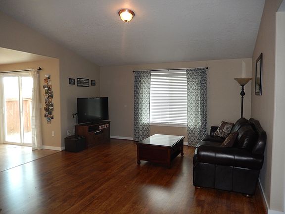 Accepted Offer with Contingencies. Upgrades galore! Hardwood laminate flooring throughout the home. Spacious entryway with beautiful slate flooring. Gas fireplace, vaulted ceilings, gas forced air and A/C, updated appliances in the kitchen with great flow between dining area and living room. 3rd bedroom has lovely French doors leading out to a deck. Very nice Plantation shutters in Master bed and bath, as well as in the 2nd bedroom. Garage has custom shelving and work bench. Outside find an extended patio UGS in front/back, fire pit area.