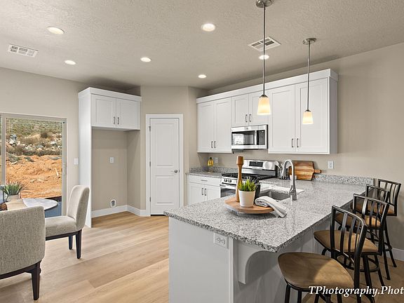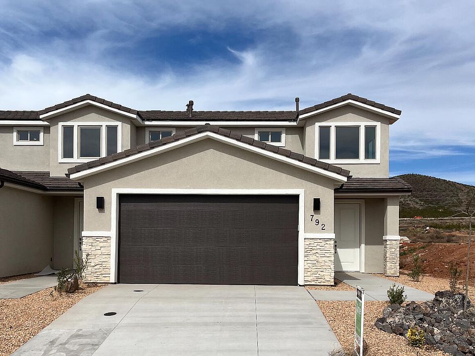 Adorable 4 bedroom townhome! 2 Car Garage with small private backyard including artificial grass. Great location near schools, biking, hiking and much more! 40 Minutes from Zion National Park. Finishes include custom cabinetry, stainless steel appliances, granite tops, tile shower/tub surrounds, upgraded fixtures and flooring! Come see for yourself! HOA will be established soon with minimal fees TBD for maintenance of small common area landscaping. Visit Unit 796 (right next door) to see exact same unit furnished and decorated.