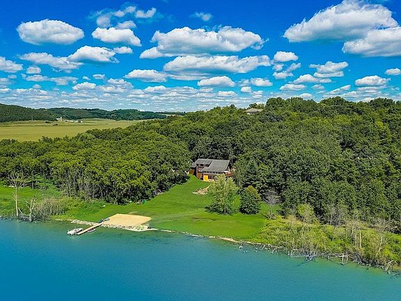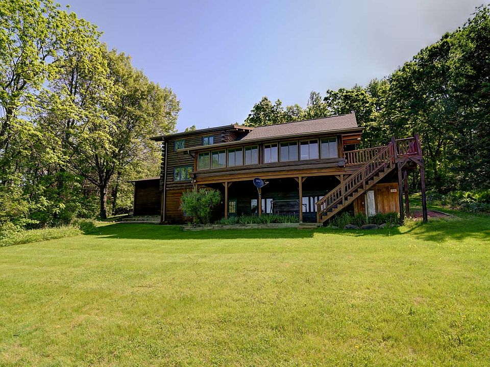 OPEN HOUSE SUN 8/14 Noon-2:00! Log home on over 300ft of beautiful level lake frontage w/30ft of sandy beach frontage! Absolutely stunning sunsets & lake views all year round from this Amish log home w/wrap around porch (logs from Wyoming)! 8.7 acres of wooded privacy overlooking bass-filled Crystal Lake! The spectacular home offers the Northwoods feel 20mins to Madison! Walk in & notice the majestic 2-story great rm w/jaw dropping flr-to-clg stone frplc &striking 20' clg that draws in the open log staircase! Wide open flr plan w/ granite kitchen! Big fmly rm w/2nd frplc &walk-out to a magnificent custom firepit &patio-relax & take in the beautiful level lake frontage &glorious bluffs! 4-season rm w/3rd frplc! Enjoy living in paradise year round! Ski Boat, Kayaks, Canoe & furnishings Inc!