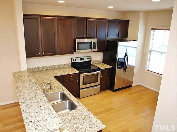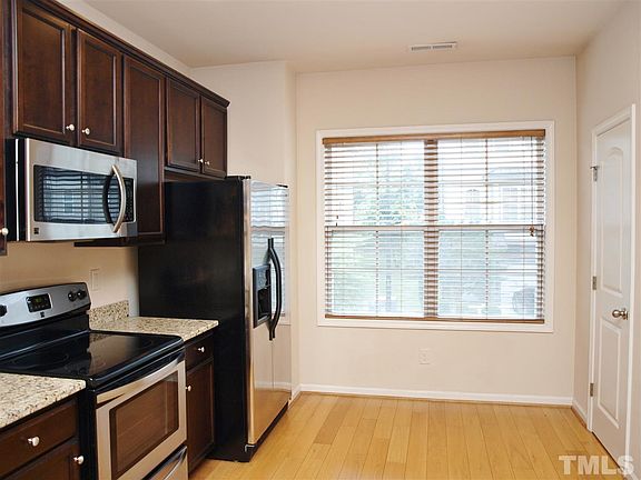 Awesome townhouse in North Raleigh is ready for you to move in! There is a bedroom and full bath on the entry level for private guest suite with access to the patio. The second level open concept features hardwood flooring, living room with fireplace, dining area and kitchen appointed with granite counters & SS appliances. Upstairs are the master suite and another bedroom with a private bath. Great location with easy access to I-540, shopping and dining. Interior has been freshly painted.