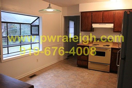 7920 FARMINGWOOD LANE, RALEIGH3BR, 2 BA, Apprx. 1600 sq. ft. Single Family House in a Beautiful North Raleigh Neighborhood with Stove, Fridge, Dishwasher, Washer & Dryer Conn., Large Walk-In Laundry Room, Den off Kitchen, Dining Room, Wood Burning Fireplace, Gas Heat and Central A/C, 1 Car Garage and Fenced-In Yard. Small Pets 25lbs or less with a $250.00 non-refundable pet fee.