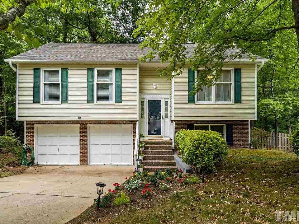 Verbally under contract. Waiting relocation signatures. Split level home. Main floor offers family rm, kitchen/dining rm, 3 bedrms, 2 baths and lower level includes HUGE bonus, 1/2 bath, utility room, plus 2 car garage! Updated kitchen w/ quartz counter tops w/ bar overhang (seats 2), subway tile back splash, SS appliances open to cozy dining area. Modern laminate flooring. Carpet less than a year old. Roof 2017. HVAC 2016. Enjoy deck overlooking wooded back yard.