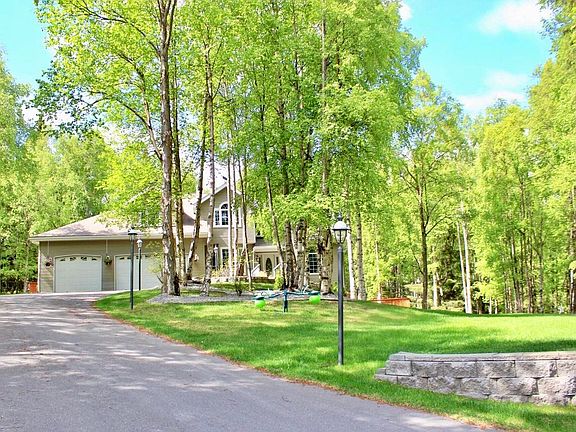 1.5+ acres of prime parkside property and luxury living in Kincaid Heights. This custom built home is positioned on the edge of Kincaid Park w/ easy access to the best single track, Nordic ski, hiking and running trails in town! Gorgeous setting- lush, landscaped lawn from front to back...and the perfect blend of natural sunlight, sprawling decks, decorative gardens and mature trees.