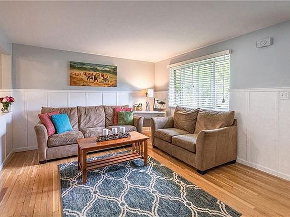 Super cute all-brick Ranch located in Ross Township!! Features include: Beautifully redone hardwood floors, Judges Paneling, and neutral colors throughout most of the Main Level, cozy White Kitchen with white cabinets, a center island with butcher block countertop, ceramic tile flooring, separate eating area that has hardwood flooring, and access to the Back yard, Living room is open to the kitchen area and has a large window bringing in lots of natural light, Updated main bathroom with wainscoting, Large finished Game Room with full bathroom and spacious laundry room, newer high-efficiency furnace and brand new hot water heater. The Back features a good size covered patio and a level fenced-in Back Yard with beautiful landscaping!! Located just minutes to McKnight Road restaurants and shops, and 15 minutes to downtown Pittsburgh!