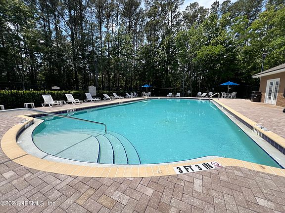 Awesome opportunity to own this 2 bedroom 2 bath ground floor home at Merrill Pines Condominiums! Great choice for a primary residence or a rental investment. Recently refreshed with neutral paint throughout and a detailed cleaning for the new owner. Open kitchen featuring GRANITE counter tops, white appliances, side by side refrigerator with icemaker, glass top stove and pantry closet. Enjoy extra seating space at the breakfast bar. Ceramic tile in the living room and bathrooms. New bedroom carpet allowance will be considered with an acceptable offer. Sliding glass doors lead out to the patio. Short walk across to the amazing amenity center, sparkling pool and shaded seating area. Gated community with remote access. This condo is centrally located under 20 miles to JI Airport, St Johns Town Center, Jacksonville Beaches, Naval Station Mayport & the Jaguar Stadium. Each condo comes with assigned parking. Schedule a tour today!