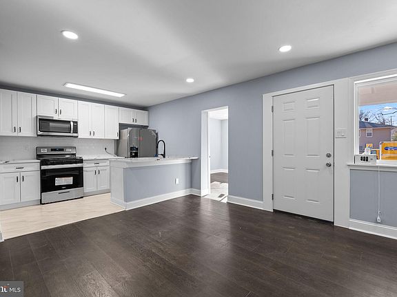 Delightful townhouse offering 1,118 square feet of living space, 4 bedrooms, and 2 full baths, perfectly blending modern updates with cozy charm in Palmer Park. The home welcomes you with a fenced front yard and a charming pathway leading to a spacious front porch, perfect for relaxing outdoors. The open-concept main level boasts gleaming wood floors, recessed lighting, and a thoughtfully designed full bathroom. The bright living room flows effortlessly into the beautifully upgraded kitchen, showcasing stainless steel appliances, a breakfast bar, ample white cabinetry, a timeless subway tile backsplash, and a convenient pantry. Adjacent to the kitchen is a versatile room, ideal for a home office or an additional bedroom. Upstairs, you'll find another full bathroom and three spacious, sunlit bedrooms, including the primary bedroom with double closets. A convenient door from the upper level provides access to the expansive backyard, which is fully fenced and features a storage shed for added functionality. Palmer Park offers convenient access to shopping, dining, and recreational facilities in Hyattsville and beyond, with major roadways like the Baltimore-Washington Parkway and Route 50 nearby for easy commuting.