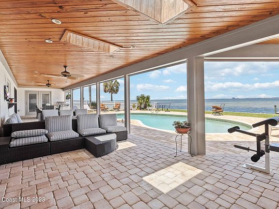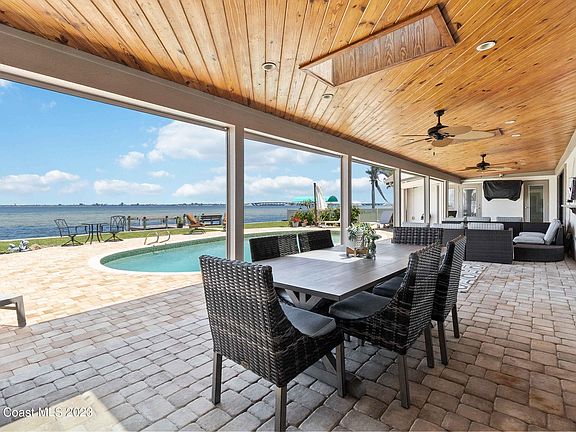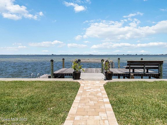 Experience Florida living at its finest in this stunning Merritt Island home! Enjoy breathtaking sunrise views from your outdoor oasis featuring a diving pool, outdoor shower and new pool filter. The deep water canal with dock and boat lift, seawall, and new pavers for the driveway and patio area make this the perfect place for boating enthusiasts. Inside, you'll find a completely updated home with a gourmet kitchen boasting granite countertops, custom cabinets, and all new stainless steel appliances. Other features include an on-demand propane water heater for the whole house, security cameras, all new ceiling fans, new fireplace mantle, and plantation shutters. Don't miss out on one of the best locations in Florida!