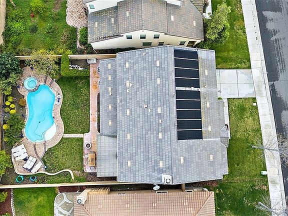 The property has a large flat lot with a beautiful pool heated by Paid solar power panels. The solar panels are owned and NOT lease. It is a 6 bedroom and 4.5 bath executive home with high ceiling at the entry. Current tenant takes really good care of the property. The garage is for 4 cars and it is extremely spacious. There is a balcony in the front and a covered patio in the backyard.