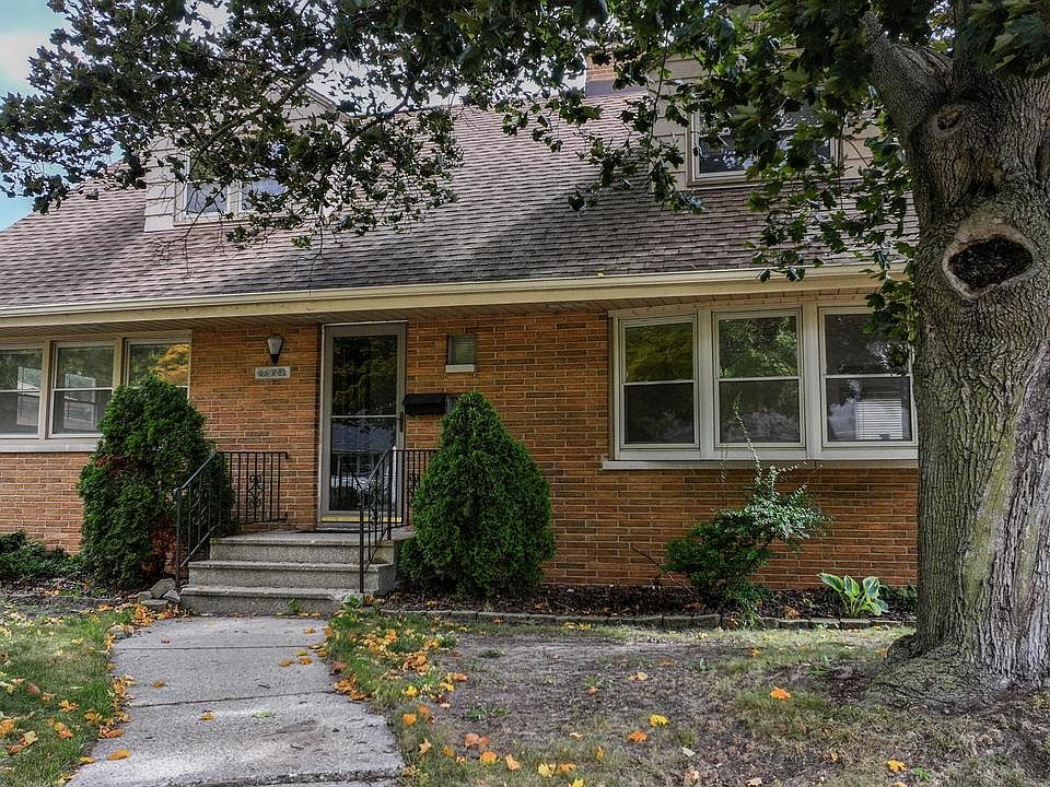 Charming 1959 Cape Cod-style home -perfect for investors or first-time buyers with a DIY spirit! This 1.5-story, 1,976 sq ft gem brims with vintage appeal, showcasing original hardwood floors, doors, custom cabinetry, and intricate tile work. The main level offers two bedrooms with generous closets, a full bath with original tile, a sunlit living room with bay windows and wood-burning fireplace, plus a kitchen with full pantry and classic reach-throughs to the formal dining room. Upstairs, a timeless wooden staircase leads to two spacious bedrooms and a full bath with dual-sink vanity. The semi-finished basement adds a half bath, while outside, a detached 2.5-car garage provides extra space.