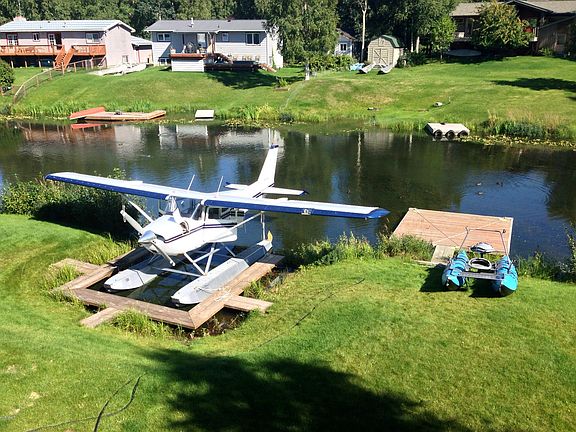 ATTN float plane pilots...you and your plane can live together! This custom waterfront home backs to Sand Lake Canal & includes a private float plane dock & slip! Fly-in waterfront property in Anchorage is a rare find in this price range!768sf garage w/drive thru bay to canal, RV pkg, landscaped lawn & cedar deck. Inside is just as sweet-beautiful layout, modern colors, custom trim & water views.