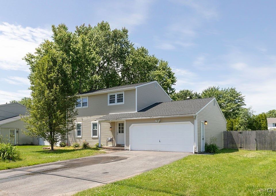 Nicely Renovated Colonial In Clay Featuring 3 Bedrooms & 2.5 Baths. Step In From Covered Porch Into Foyer With 1/2 Bath & LVT Flooring Passing Into Living, Dining & Throughout Upstairs Bedrooms Making It Easy For Clean Up & Low Maintenance . Beautiful Updated Bright Kitchen With Quartz Counters, Tile Backsplash, Along With Gorgeous 12x24 Floor Tile That flows Down Into Large Family Open To The Kitchen. Slider Off Family Room Looking Out Into Fully Fenced Yard With Deck & Firepit, New Siding & Roof. Walk Up Finished Hardwood Stairs To Second Level Where You Have A Gorgeous Full Bath With Double Sinks & 3 Generous Size Bedrooms. One Of which Has A Walk In Closet. Basement Is Fully Finished Creating More Living Space. Displaying Tile Floors With In Floor Heat & Full Bath With Walk In Shower. Minutes From Restaurants, Shopping & Major highways. New Stainless Refrigerator & Stove Will Be Installed Prior To Closing. Make Your Appointment Now!!