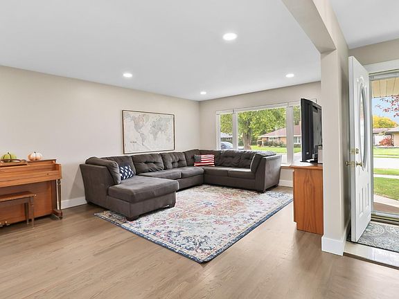 Incredible 4 Bed / 2 bath MUNSTER brick ranch! Massive master suite w/ Hickory floors AND cathedral ceilings. Sliding glass doors make it easy to access your deck and patio area. Additional 3 beds are generously sized too. Oversized, detached garage along with large yard and deck to enjoy. New recessed lighting, paint, and flooring throughout the open concept living / dining / kitchen areas. Newer windows, roof and 2 High Eff HVACs. Partially finished basement with TONS of storage / room to expand as needed. Walking distance to school and park. Just mins from expressways for easy commuting/shopping while being tucked away from the hustle and bustle! Award winning schools and LOW taxes round out this great home. Make your appointment today!
