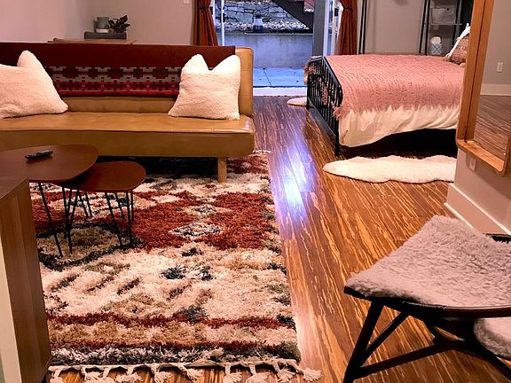 Spacious 570 square foot, professionally cleaned and sanitized, open, furnished, and well decorated basement studio apartment with private entrance and high ceilings in heart of highly desired historic Kenton business district near Kenton Park, restaurants, coffee shops, pubs, library, shops, farmers market, post office, and max yellow line within a couple of blocks! Walk Score 90 and Bike Score 94! Easy commute to Adidas, Daimler, Swan Island, Legacy Emanuel, downtown Vancouver, max line to downtown Portland. All Utilities (water, sewer, garbage, electric, internet) paid, full sized washer and dryer in unit, King-sized bed, Covered Patio with French Doors, TV with streaming services, Toaster Oven, Microwave, Fridge, and Hot Plate (no full size range), electric fireplace, lighted pathway Credit report to be requested from selected applicant. Sorry, no pets. No Smoking. Lease duration is flexible up to 12 months. One month minimum.