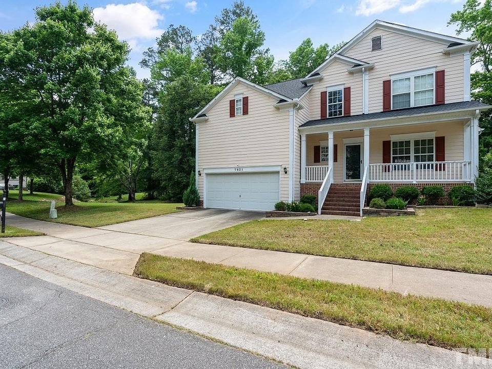 Gorgeous and well maintained 4 bdrms, 2&1/2 bthrms home, 2 car garages on Cul-De-Sac in NW Raleigh. Kitchen updated in 2019, SS Appls. and large bay window eat in kitchen. Office/Sunrm on 1st flr. Gas fireplace in the living rm opens to dining rm. Hardwood throughout 1st flr. Oversized 4 bedrooms on 2nd flr. Location is convenient to Shopping. Minutes to RTP and RDU Airport , I-540 access. Walking distance to Leesville Schools. Enjoy lots of privacy!
