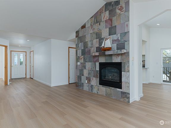 Enjoy Beautiful Birch Bay views of Sunsets, Seagull's, & Sailboats from most of this delightful one level home which features 3 bedrooms, 1.75 baths with vaulted ceilings, open concept layout and ample natural light year round. This home has been freshly updated with new luxury vinyl plank flooring, fresh inside and out paint and so much more. Step out onto the private westerly facing deck and patio to enjoy the bay views and coastal breeze, entertain or simply soak up the refreshing saltwater air. Prime location conveniently located just 3 miles from I-5 and within walking distance to the beach, state park, and beachside dining options. Feel secure in this friendly, relaxing Birch Bay's Sea Links gated community! Don't miss this one!