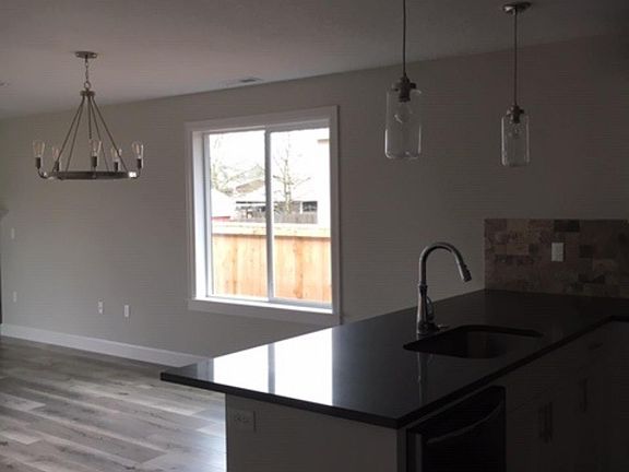 SALE PENDING, but we have one more. Charming, 4 bedroom home in a quaint little town. Fully fenced, sprinkler system, landscaped and patio are exterior features. Inside, you'll find the custom cabinets in the kitchen have quartz counters, tile backsplash, a pantry closet and a built in Microwave, range and dishwasher. Eating bar and room for dining table, gas fireplace, sliding door to outside and plank floors complete the Great Room & Kitchen. Entry hall, coat closet and 4th bedroom are at the front of the house. Inside utility room leads to garage with openers. There are 2 more regular bedrooms with nice sized closets, and a master with a walk in closet, it's own bathroom, tray ceilings and a fan light. An additional bathroom, is in the hall. The cabinets here are also quartz. New photos coming showing painted exterior and landscaping. The exterior in the photos is a similar house that is sold.