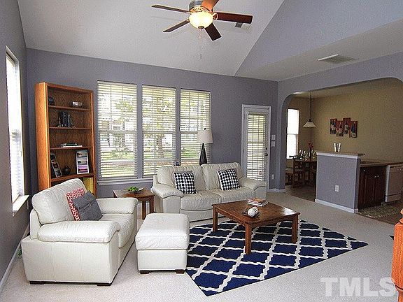 Elegant townhome with bright open layout on sunny corner lot. First floor features cathedral ceiling, corner gas log fireplace, private office/study with hardwood flooring. Large master suite with two walk-in closets, garden tub and separate shower. Conveniently located near Southpoint Mall. Walk to shopping, dining and American Tobacco Trail for jogging and biking. Relax on screened G in porch amidst beautiful landscaping. Home Warranty included. Move in ready now.
