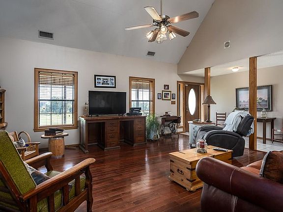 Pennies on the dollar for this custom built rustic country style 4 bedroom, 3 bath split bedroom plan home. Real hardwood, 17ft. ceilings in living, oak cabinetry, 2 claw foot tubs, loft area, sitting room or office off the upstairs master (has 2 master suites) WB fireplace, veranda outside master. detached carport & workshop. Gorgeous views. Needs TLC.
