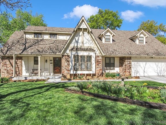 Are you looking for a beautiful home in a great neighborhood? Check out this lovely home in Oak Forest South in Jenks School District. All rooms are large including the formal living, dining, den, plus a flex room with a separate entrance. The den opens into the eat-in kitchen and features a wood burning fireplace and built-ins. The laundry and half bath are located off the kitchen. The downstairs master has a large walk-in closet and private bath. Three bedrooms, all with walk-in closets, a hall bath, plus a spacious flex room with a full bath are up. The beautifully finished out flex room with a cedar closet and tons of built-in storage could be a separate living quarters, a game room, a craft room, or whatever your family needs. Enjoy the sound of the birds or have a barbeque in the private back yard with a covered patio. Replacements include a new roof and gutters in 2021, all exterior concrete including driveway, extra parking slab, sidewalks, porch and patio were replaced in Dec 2021. New luxury vinyl in den, kitchen, laundry, and half bath and new tile in master bath August 2023. This well-maintained home has been lovingly cared for and is ready for you to update to your own style.