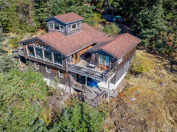 Endless possibilities abound for this majestic waterfront property on Guemes Island. The main home is just over 2500 sqft. featuring some of the best views on the island. Nearby, a 1496 sqft. studio provides additional space with separate kitchen, bathroom, and laundry. There are 7 additional outbuildings ranging from 80-168 sqft for storage. Add bedroom count with septic expansion. Fenced raised-bed garden. 5 minute ferry ride from Anacortes. Video available and must be watched by all.