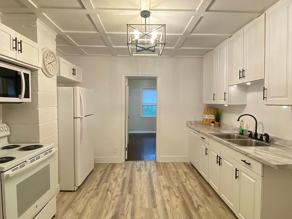 This newly remolded single family home features all new cabinets, cupboards, counters, lighting, interior doors, and some new appliances. The hardwood floors are refinished and 2 rooms have new LVP flooring. All rooms are freshly painted. This home is located on a very private, wooded one acre lot. It is located on a no-exit road in Summerfield, NC. This home features three bedrooms ,one bathroom, a large kitchen, laundry room with hookups, storage room, living room, and an entertainment room. There is a partially enclosed carport included. Spectrum Internet is available in this area. It is available for rent with approved credit check and lease agreement.