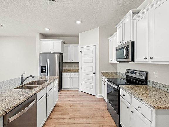 This gorgeous ALL BRICK home is like new! Built in 2021, it's located in the popular gated community of Antietam with close proximity to I-10, military bases, Navy Federal Credit Union, hospitals and schools. Neighborhood is quiet with a community pool, sidewalks throughout, putting green, trees, and reflection areas to sit and enjoy nature. You will love the flow of this Arlington floorplan with a spacious open kitchen/dining/living space. Home includes a Smart Home System Technology. The kitchen has a large island perfect for family meals and cooking prep, stainless steel appliances, smooth top range, walk-in corner oversized pantry, built-in microwave and refrigerator. All kitchen and bathroom countertops are granite. Split bedroom floorplan provides plenty of privacy. Master bedroom with en-suite bathroom has double granite vanity, huge wall mirror, walk-in shower, separate water closet, linen closet and large walk-in closet. Easy care wood-look vinyl flooring throughout the home with carpet in 2 bedrooms and tile in master bath. Oversized laundry room has space for more shelving or cabinetry. Enjoy relaxing with family & friends on the covered front and back patios. Fully fenced backyard and HOA maintains the front yard including grass cutting, edging and bi-annual fertilization. HOA has been paid in FULL for 2023! Schedule a showing today!