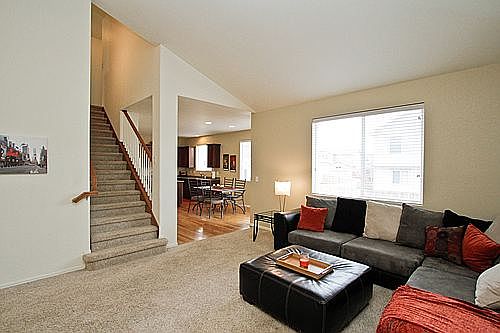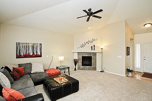 Great location in the Villages at Riverdale. Open floor plan that is great for entertaining. Tons of natural light in living room with vaulted ceilings and gas fireplace. The kitchen boasts Corian countertops, maple cabinets and stainless steel appliances. Hardwood floors throughout kitchen and dining room. Large master bedroom with master bath and walk-in closet. Good sized back yard and a heated 3 car garage!