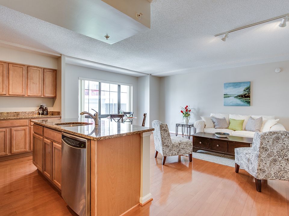 Beautiful & bright condo in the heart of Silver Spring. Quiet large corner unit facing courtyard! Many upgrades including new HVAC,W/D (1yr). Granite counter top, SS appliances, gleaming maple hrdwd floor. Walk to train&metro, parks, shops, restaurants! Club room & gym. Main entrance w/ security sys. Courtyard for kids to run! On sight property manager.