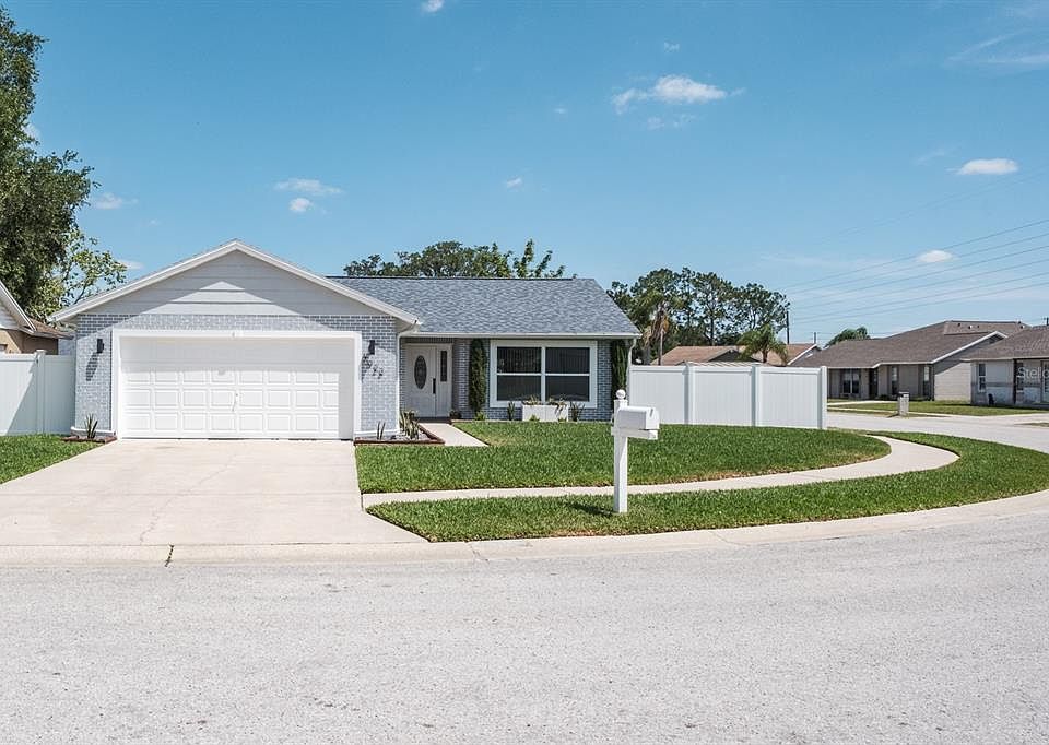 Designers delight.... Be prepared to be impressed! Welcome to your beautifully updated and tastefully designed home on a premium corner lot offering nearly 1,300 sq ft of fine Florida living! Three bedrooms, 2 full bathrooms and a 2-car garage! Meticulously maintained! Enter through the beautiful leaded glass door with coordinating side lite to extensive luxury vinyl flooring throughout the living and bedroom areas. Lovely tile flooring is featured in the bathrooms. Beautiful finishings include crown molding, upgraded, large base molding and trimmed out window casings, new interior doors, upgraded hardware, newer windows, new electrical rocker switches and recessed lighting. No popcorn ceilings!! Open concept combination living and dining room is centered by an enchanting electric fireplace accent wall. Kitchen boasts white shaker soft close cabinetry, designer granite counters, cabinet pantry, glass tile backsplash, under cabinet and lower cabinet lighting, breakfast bar with working center island showcasing posh lighting, deep undermount farm sink, reverse osmosis, stainless appliances include a refrigerator, ceran top range and dishwasher. French doors lead to bedroom #1 featuring a charming window seat with beadboard accents and 2 closets. The other secondary bedroom is located on the opposite side of the home convenient to the renovated hall bathroom boasting floor to ceiling tile, granite counter vanity and a tub/shower combination. The primary bedroom features a walk-in closet with custom closet shelving and its own fabulously updated ensuite bath with single vanity and walk-in shower. The convenient inside laundry area is located just off the garage and boasts additional overhead cabinet storage. Because the sellers have thought of everything, the garage features designer flooring, a minisplit AC, newer garage service door, and newer cabinetry for storage. Living space is also extended outdoors in the enormous backyard! Fully fenced for exceptional privacy and equipped with a wide gate opening offering easy access for storing your water and land toys! A tile deck and a separate Trex deck provide a marvelous extended living space for ultimate entertaining and family fun! Other updates include roof new 2019, AC 2 years old, fresh, blown insulation only 2 years ago, newer water heater and updated electrical panel. Short distance to quaint downtown New Port Richey offering shopping, festivals, breweries, restaurants and entertainment. No expense has been spared in this tastefully updated beauty. NO HOA or CDD fees. A must see!