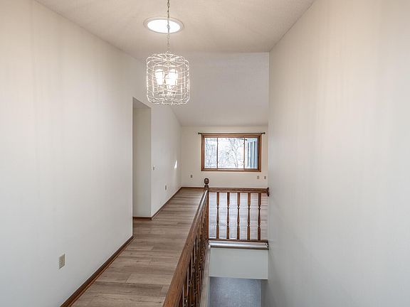Lakeville 3 bed, 3 bath home that is beautifully situated overlooking Cherryview Pond. The cozy sunroom is flooded with light and features a gas fireplace. High quality Core-Tec engineered floor throughout the main level. New 2023 roof, New furnace and AC 2017. New Water heater 2019. New gutters 2019. New carpet in the lower level. Reverse osmosis water filtration. Fully fenced in--great for pets! How many homes have a 1/4 mile walking path around a pond in their backyard? The best part is that the city of Lakeville maintains the wooded area around the pond. Imagine the family ice skating in the winter out your back door and then warming up by the lower level fireplace. Office space in lower level could be converted to a 4th bedroom--features an egress window. Close to Cherry View Elementary, Century Middle School, and Lakeview North High School.