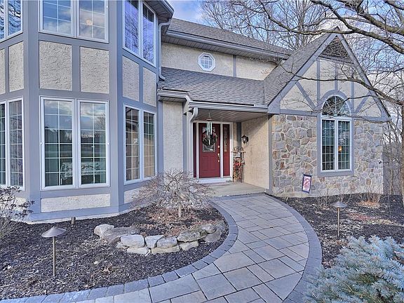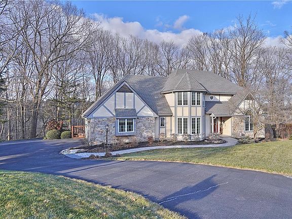 Stately Tudor style colonial located at the end of a quiet cul-de-sac in the popular Applewood community. Situated on an acre wooded lot, this beautifully kept home offers over 3600 sq ft of living space including the walk-out, lower level with 10' ceilings. A new paver walkway with accent lighting will direct to the covered porch entranceway. Features include a formal living room & dining room with hardwood flooring, warm and inviting family room with a wood-burning fireplace, spacious eat-in kitchen with granite counters, double door entry into the master suite with lrg master bath with whirlpool tub. Three additional large bedrooms and a family bath complete the 2nd floor. The walk-out lower level features a family area, full bathroom, wet bar, and pool table that remains. The huge deck is perfect for grilling and relaxing while enjoying the view of the wooded backyard. Enjoy the Applewood pool, clubhouse, tennis, and social events. Outstanding home in a great neighborhood.