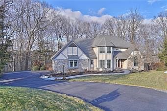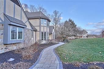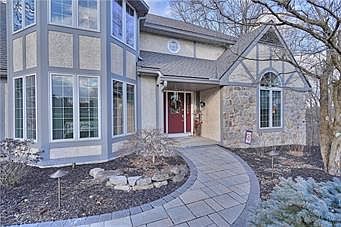 Stately Tudor style colonial located at the end of a quiet cul-de-sac in the popular Applewood community. Situated on an acre wooded lot, this beautifully kept home offers over 3600 sq ft of living space including the walk-out, lower level with 10' ceilings. A new paver walkway with accent lighting will direct to the covered porch entranceway. Features include a formal living room & dining room with hardwood flooring, warm and inviting family room with a wood-burning fireplace, spacious eat-in kitchen with granite counters, double door entry into the master suite with lrg master bath with whirlpool tub. Three additional large bedrooms and a family bath complete the 2nd floor. The walk-out lower level features a family area, full bathroom, wet bar, and pool table that remains. The huge deck is perfect for grilling and relaxing while enjoying the view of the wooded backyard. Enjoy the Applewood pool, clubhouse, tennis, and social events. Outstanding home in a great neighborhood.