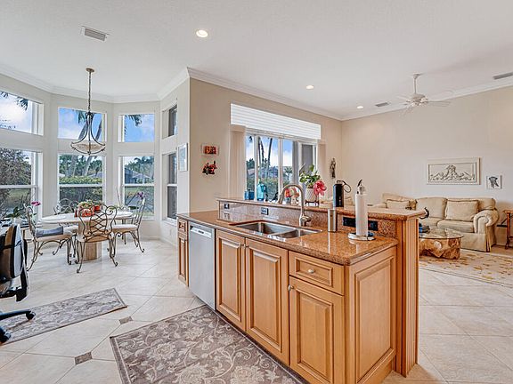 Water, water everywhere! VIEWS are OUTSTANDING! Private,serene,quiet,peaceful describes this 4 Bedrm favorite floorplan! Best priced GIBRALTOR model with all wood cabinetry, stainless&Granite. 2 1/2 BTHS, & accordian shutters provide storm protection! High end moldings, lots of bright light, with eastern breezes off the backyard lake make this house most desirable! Walk to state of art FITNESS Ctr,water aerobics, lap pool, resistance pool,indoor racquetball & whirlpool, beauty salon, sauna,massage,steam! 10 Tennis, 6 pickleball, 3 bocce crts with pro shop, full time social director, pro,tropical pool, full service restaurant with indoor/outdoor dining, shows clubs, so many amenities in the 55+ award winning Valencia lifestyle community! LOVE IT! HOA monthly fees include outside painting of home, in house security system with monitoring, $400 per year credit at restaurant, outside landscaping, pressure cleaning of roof, cable TV including HBO and more, hi speed internet, wi-ri, amazing clubs, organizations, parties, shows, art room, billiards, library, fitness classes, pools, competitive organized pickleball, tennis, and so much to keep everyone as busy as they choose! Ask Listing agent for a TOUR! You will fall in love with this best Valencia Community!