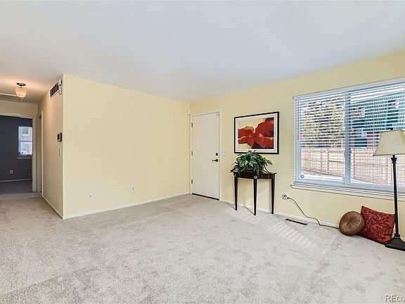 ** PRICE REDUCED and a Seller concession is offered with a full purchase price offer ** on this sunlit end unit Ranch-style townhome with an attached carport and direct ground level entry from the carport into your new home. This townhome lives like a single family home with only one small shared wall. No one above or below. No stairs = one level living! The home is located in the back of the community for your quiet enjoyment. The mature trees and lankscape provide Summertime park-like shady common areas. The community pool is also nearby. In the carport area, there is your own handy storage closet. The sunny interior welcomes you into the galley style kitchen, with a newer sink and faucet with some other special touches to discover, and an eating space looking out onto your privately fenced patio. The home features newer double pane windows, all appliances including washer and dryer, newer paint, and carpet, luxury vinyl plank flooring in the guest bedroom (or office as you prefer) Central A/C and an updated bath with a convenient walk-in shower. The primary bedroom has two spacious closets. There is an ample extra parking area for your guests. You have quick access to the nearby lovely Little Dry Creek Trail, Lake Arbor and open space. You will appreciate the convenient access to charming Old Town Arvada with shops and restaurants, quick access to the Boulder Turnpike and I70 or convenient access to downtown Denver. Don’t miss this special opportunity to own your own home in a fantastic community!