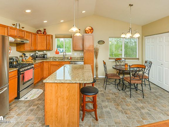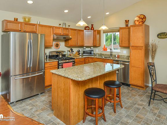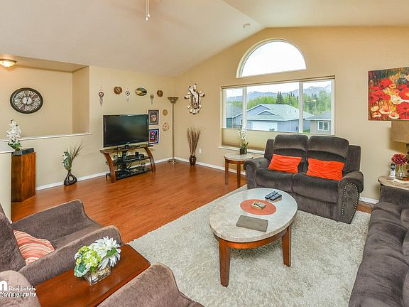 Enjoy majestic mountain views from this meticulously maintained 4 bedroom, 2 bathroom home on a massive lot. Walking distance to parks. Some of Alaska's best bike trails blocks away, stunning up-grades throughout! Warm and inviting open concept with custom paint, granite counter tops, stainless steel appliances, vaulted ceilings, hardwood flooring, views, and space for toys.