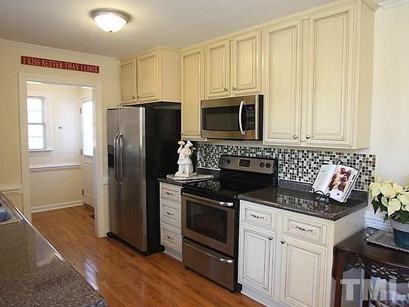 Recently Renovated All Brick Transitional Cape Cod, New Kitchen w/ New SS Appliances & New Floors. Featuring Crown & Chair Molding, Vaulted Ceilings & Wood Burning Masonry Fireplace. Large Level Corner Lot w/ Privacy Fence & Storage Shed. 2014 HVAC and 2014 Water Heater. No City/HOA Dues ! . Located close to Lake Wheeler.