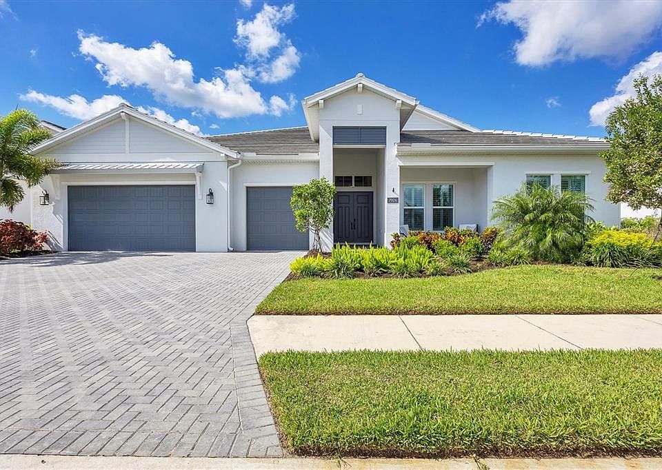7924 Redonda Loop offers 4 beds, 3.5 baths and 3,366 square feet of living space and built in 2022, combining coastal elegance with modern functionality. The paver driveway leads to a front patio and lush landscaping. As you step through the solid double doors with a transom window above, you're greeted by a soaring foyer ceiling adorned with dark beams and illuminated by three designer pendant lights. The grand family room boasts soaring ceilings with dark beams. The custom-built entertainment center has shelving, cabinetry, and lighting. A wall of 10-foot zero-corner sliders, with impact glass, floods the room with natural light while providing seamless access to the lanai. The gourmet kitchen features a large floating island with seating and storage all around, a stainless-steel appliance package with a Wolf six-burner range with dual ovens, KitchenAid refrigerator, Asko dishwasher, and a Wolf microwave. Quartz countertops flow seamlessly into the backsplash, and soft-close custom cabinetry that nearly reaches the ceiling. A spacious closet pantry with wood shelving adds even more storage. The kitchen opens to the large dining area with another set of dark ceiling beams and two designer hanging lights. Outdoors, the sealed paver lanai offers both covered and uncovered seating areas, a heated saltwater pool and spa with a sun shelf, and a spacious backyard with lush, private landscaping. The preserve views and westward exposure create a serene, quaint environment. In the luxurious primary suite, a large picture window overlooks the lanai and preserve views, while a private door leads directly outside. The suite boasts two closets—one is a walk-in with custom California Closet built-ins. The elegant bath features a 13-foot vanity with two sinks and a makeup area, a glass walk-in shower with two heads, one for a rain shower, and a free-standing tub. The first guest suite offers a window, neutral carpeting, and a spacious walk-in closet. The en-suite bathroom boasts a seamless glass shower, tile extending to the ceiling, quartz countertops, and linen closet. Two more guest bedrooms await, each with windows featuring plantation shutters. Both rooms offer walk-in closets—one is custom-organized—and share a full bathroom. This shared bath includes dual sinks with quartzite counters, a tub/shower with subway tile extending to the ceiling, and an adjacent storage closet for added convenience. The laundry room provides a folding space, quartz countertops, custom grey cabinetry with a sink. There also a drop-off area that could be a mudroom. Completing the home is a three-car garage with an epoxy-coated floor. The home offers the possibility for smart home features available with a subscription. Across the street is a gazebo and community greenspace. The Isles amenities include a Clubhouse, state-of-the-art Fitness Center, Heated Pool/Spa, Fishing Pier, Dog Park, Game Lawn, Pickle Ball & Tennis Courts. Pursue an active lifestyle in Lakewood Ranch - the #1 selling planned community in the U.S., featuring 33,000+ acres w/ nearly half preserved as open space & 150 miles of walking/biking trails, parks, lakes & sports courts/fields. The Isles is located just a few minutes from restaurants, golf courses, sports activities & UTC. It is just a short drive to Lakewood Ranch Main Street, Waterside Place, Lakewood Ranch Hospital, Sarasota Polo Fields & I-75. 7924 Redonda Loop perfectly balances luxury and comfort for modern living.