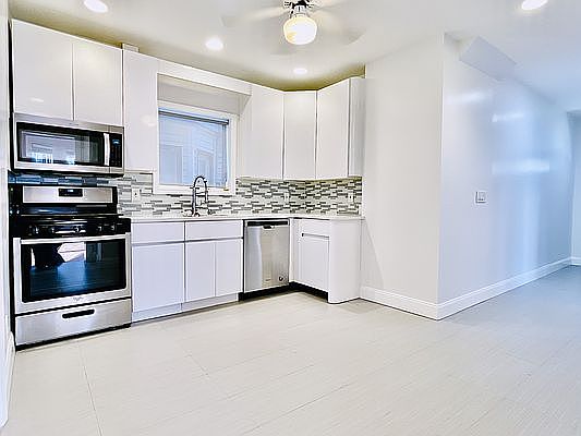 For all inquiries, please message through the app or email for quickest response. Rarely available, this is your opportunity to upgrade to more space in the heart of tree-lined Ridge Boulevard, one of Bay Ridge's most quiet yet central areas for transportation, shopping, dining and parks. All rooms bathed with sunlight, this freshly painted corner 2BR/1BA features an open airy, sun-filled living/dining room (27'2 x 12'8") with custom Levolor window treatments, and the eat-in kitchen is equipped with stainless steel Whirlpool appliances, abundant cabinet/pantry storage for a chef and elegant quartz countertops. **Private garaged parking space / storage available for additional fee.** On the first level of a lovely two unit Victorian corner home, this floor-through residence spans 1,100 sq ft, with modern finishes while preserving classic architectural details. Upon entering your private entrance, European tile entry foyer welcomes you to an expansive living room and coffered dining area with high 9-ft ceilings and oversized bay windows, perfect for entertaining. The primary bedroom measures 12'x11'10" and 2nd bedroom measures 11'9"x10'10" with dual exposures and abundant closet space. Renovated bathroom and fixtures with waterfall walk-in shower. Heat & hot water included. Dedicated covered parking and storage space in the adjacent garage (additional fee applies). Close to buses, subway, restaurants, shops and Ft.Hamilton / Shore Road recreation areas. **Bay Ridge is one of Brooklyn's most accessible neighborhoods with easy access to Manhattan, Brooklyn Army Terminal, Industry City, NYU/Langone & more * Subway: R at 77th/4th Ave (easy 5 block) * Express Bus: x27 to Manhattan on nearby Shore Rd * NYC Ferry to Wall Street located at the 69th St pier and Brooklyn Army Terminal * Car: quick access to the Belt Parkway and BQE Broker fee applicable. Guarantors & shares considered. Pets case by case. Won't last - make your appointment today!