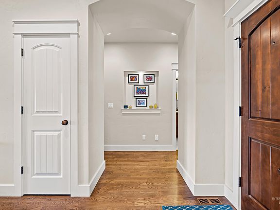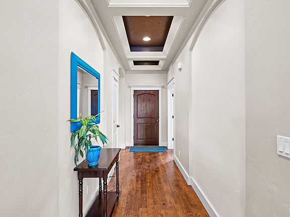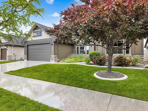 Welcome to your STUNNING SE Boise home in the COVETED Painted Ridge Sub! PERFECTLY SITUATED in an IDEAL LOCATION next to Micron and just minutes from freeway access, Boise Airport, downtown, and Lucky Peak Rsvr.! As you enter you'll be greeted by a high recessed tray ceiling leading down the inviting hallway to the breathtaking OPEN CONCEPT kitchen with LARGE GRANITE ISLAND perfect for gatherings. The living room is adorned with a large TILED fireplace w/ mantle adding coziness and the real HARDWOOD floors add a touch of elegance and warmth. Be treated with luxury in the primary bathroom w/ dual vanities and newly redone tiled shower. Step outside to your professionally landscaped backyard and peaceful covered patio perfect for just lounging or BBQ's! Enjoy having no backyard neighbors and embrace views of Bogus, Table Rock, Lucky Peak, and the surrounding hills! BRAND NEW exterior paint and 3 car garage with EPOXY flooring! Spend summer days walking to and from the luxurious community pool just a block away!