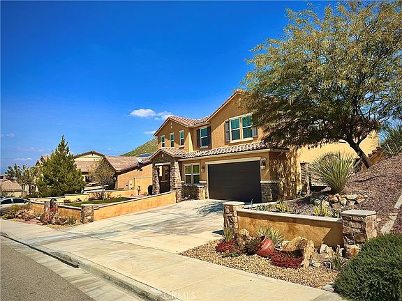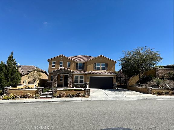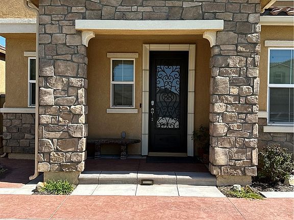 Immaculate mediterrenean one of a kind custom floor plan in the newly developed Spring Mountain Ranch Community. 5 bedroom, 3 bath, 2 car garage home on a premium lot! This home has been upgraded with the finest materials in every room. Pride of ownership can been seen throughout. Current owners reconfigured the floorplan and added to the downstairs floor a custom office with dual seating, mud room, expanded the kitchen and created an extensive pantry that includes a mini fridge and built in cabinets with quartz counter tops to match the kitchen. Kitchen was completely gutted and had custom cabinets built with under cabinet lighting and lighting inside the kitchen cabinets with glass doors, Ktchen island was also made considerably bigger. Downstairs also includes a guest bedroom with a full bath and a formal living room and family room with a fireplace. Upstars includes: Oversized primary bedroom. Primary bathroom has a seperate bathtub, walk-in shower, enclosed toilet room, dual vanity sinks and huge walk in closet with custom built in shelving and drawers. Laundry room includes a handmade butcher block counter top, perfect for folding clothes, a pull out drying rack, custom cabinets, shelving and a sink. Also included upstairs is a bonus room currently being used as a second living room, full bathroom with dual vanity sinks, and 3 other bedrooms. Flooring features modern grey tiled flooring downstairs and hardwood flooring on stairs and all of upstairs hallways and bedrooms. Garage has modern black epoxy flooring with built in storage shelves and retractable wall work bench. Exterior includes, custom hand made wrought iron gates and front door, a well manucured lawn, fruit trees, and drought tolerant plants and trees! Also included are paid off solar panels, keyless entry front door, nest thermostat and google door bell camera.