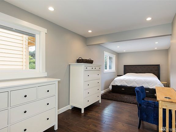 Better than new home with strong bones and beautiful modern updates. The main floor has a new 3/4 bath, 2 bedrooms & living room with engineered hardwood floors throughout. Updated kitchen w/quartz counters & porcelain tile floors. Sliding door to huge deck plumbed w/ gas, perfect for BBQ's. Finished lower level has bedrm, rec room & newer bath w/ heated floors & soaking tub. Big items are: new roof, cedar siding, front porch, gas furnace, large concrete slab for parking and electrical panel.