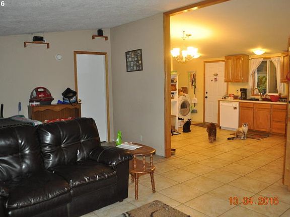 Very peaceful setting of this 1100 sq foot open kitchen, dining and living room, 3 bedroom, 2 bath home with new tile throughout. Large deck to enjoy those nice days. Attached carport has extra out building with lights and power. Small building out front could be cute play house or extra storage. Hot tub is included but has not been used for a long time so not sure if it works