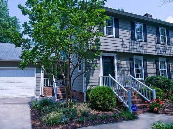 Beautiful 2 story home on large wooded lot. Updated kichen, wood laminate, new carpet and tile floors, crown moulding throughout, exposed beams, double car garage, deck, bay window, recent a/c and furnace, alarm system, huge bedrooms Neighborhood Description Quiet, established, wooded, young children, great variety of houses (no cookie-cutter houses), sidewalks