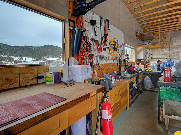 Sun baked 3 full acres in highly sought out Evergreen Meadows, the best of both worlds right in between Evergreen and Conifer! Your Southern exposure oasis awaits you! Enjoy generous size 4 Bedrooms, 4 baths, office and wonderful walkout remodeled family room loaded with hardwoods that opens up to full trex wrap around decking overlooking gorgeous trees, stream and mountains perfect for entertaining. Wonderful kitchen with windows galore, stainless steel appliances . Enjoy Paved driveway that leads to the recreators dream of an over sized 1500 sq feet of heated garage/workshop(concrete floor pad) ample enough for 8 cars, RV storage and Big Boy Toys in Big Boy Garage. House has extra large carport attached to main home area perfect for guests and storage. Wonderful underground pet fence installed for your pets to roam free on the range. Mountain living at its best offering privacy, space and total convenient location and priced to Sell. Sick of the City, Come and See!