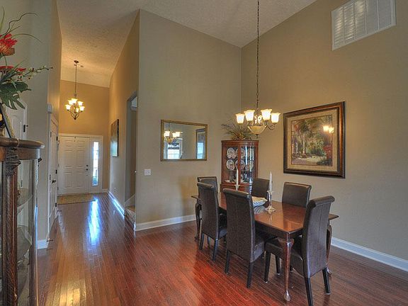 Better than new! Upgrades includes, covered porch, back patio, granite, hardwood floors, Irrigation, Sodded Yard, & Fully landscaped. Rods & Blinds remain (not curtains/drapes). Tastefully decorated open floor plan. Very close to the Green Way Entrance
